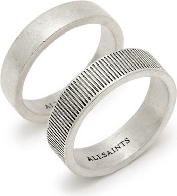 An aged finish brings vintage-inspired texture to these sterling silver band rings featuring smooth and ribbed finishes.