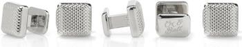 Pavé-inspired texture elevates the shimmer and distinction silvertone shirt studs cast in a square shape that handsomely accents any formal or black-tie look. Let them brighten your patterned formalwear or pair them with simpler fabrics and finishes to let them really shine.