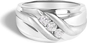 Men's Silver 1/2 Cttw Diamond Channel Set 3-Stone Band Ring