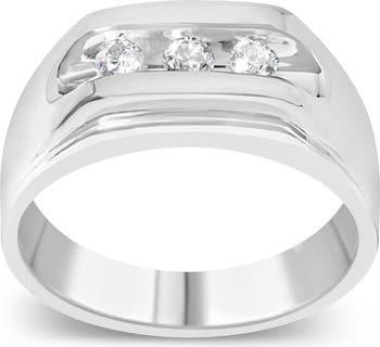 Men's Silver 1/3 Cttw Diamond Channel Set 3 Stone Ring Band