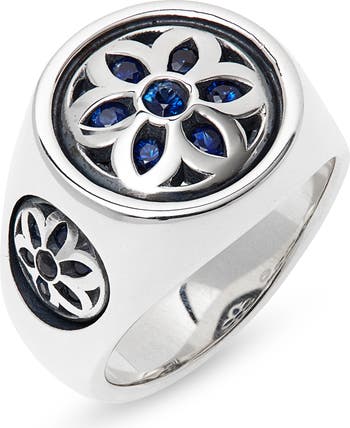 Good Art Hlywd Men's Small Club Sapphire Flower Signet Ring, Alternate, color, Silver