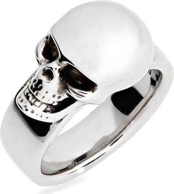A grinning skull brings signature McQueen edge to an Italian-crafted silvertone ring that makes a bold statement.