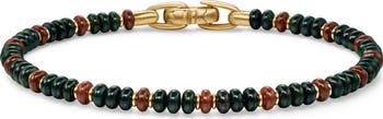 Beautiful bloodstone, red jasper and 18-karat gold beads enchant this everyday bracelet ready to join your stack.