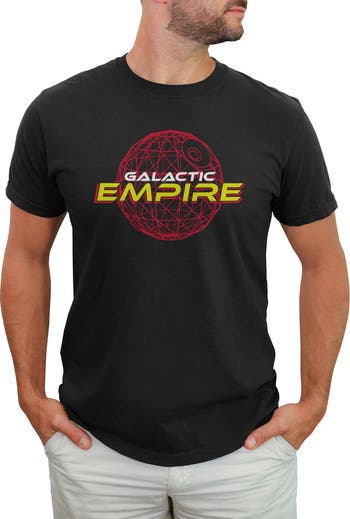 - Own the moment with this stylish new men's t-shirt that is perfect for every occasion! Featuring a cool, artistic graphic of a Death Star and the text: "Galactic Empire" printed across the front.