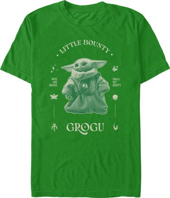 - Protect the galaxy with this men's t-shirt that will look perfect alongside the New Republic! Featuring Grogu and the text "Little Bounty Grogu" printed across the front.