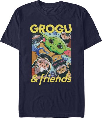 - Protect the galaxy with this men's t-shirt that will look perfect alongside the New Republic! Featuring a fun graphic of Grogu with a group of Anzellan Droidsmith and frogs jumping around them.