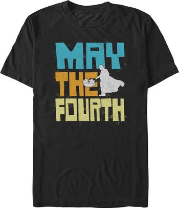 - Protect the galaxy with this men's t-shirt that will look perfect alongside the New Republic! Featuring a cool graphic of the phrase: "May The Fourth Be With You" with the outline of the Mandalorian and Grogu printed on the front.