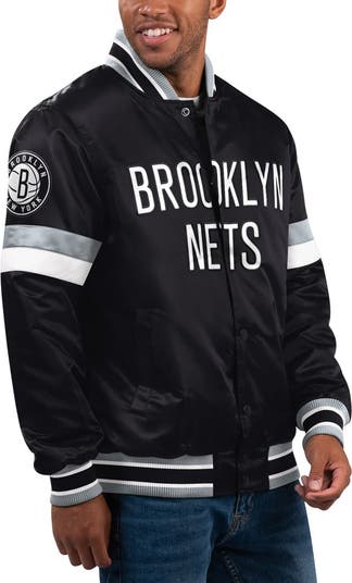 Represent your Brooklyn Nets pride in style with this Starter Home Game Satin Full-Snap Varsity Jacket. This satin-finish jacket features embroidered Brooklyn Nets graphics and a rib-knit collar, cuffs, and waistband for a comfortable fit. Whether you're courtside or watching from home, this jacket will keep you warm and stylish while you cheer on the Brooklyn Nets.