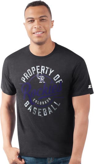 Rep your Colorado Rockies pride in effortless style with this Starter Prime Time Property Of T-Shirt. Made from a blend of soft cotton and durable polyester, this tee provides a comfortable feel that's perfect for all-day wear. The bold screen-printed Colorado Rockies graphics on the chest leave no doubt about where your baseball allegiance lies.