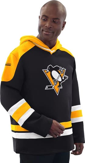 Stay warm while repping your favorite hockey team with the Pittsburgh Penguins Hockey Pullover Hoodie from Starter. This classic hoodie features contrast-color stripes and embroidered appliques that let everyone know you're a diehard Pittsburgh Penguins fan. The midweight fleece lining provides added warmth and a soft feel, making it perfect for those chilly days at the arena or anywhere you want to show your team spirit.