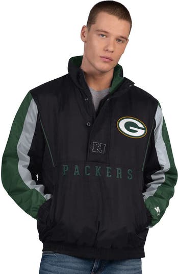 Showcase your Green Bay Packers pride with this Men's from Starter. The quilted lining provides warmth and comfort, while the front zipper with four-snap overlay helps to provide protection from the elements. The fabric applique team logo with embroidered detail on the front and back proudly showcases your Green Bay Packers pride, while the sleeve stripes and contrast-color piping add a touch of athletic flair.