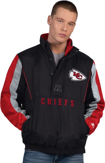 Showcase your Kansas City Chiefs pride with this Men's from Starter. The quilted lining provides warmth and comfort, while the front zipper with four-snap overlay helps to provide protection from the elements. The fabric applique team logo with embroidered detail on the front and back proudly showcases your Kansas City Chiefs pride, while the sleeve stripes and contrast-color piping add a touch of athletic flair.