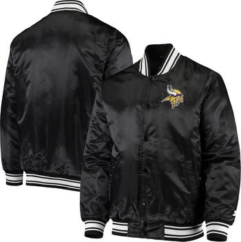 Men's Starter Black Minnesota Vikings Locker Room Satin Varsity Full-Snap Jacket