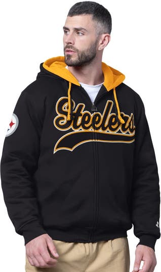 Be prepared for the elements as you head out the door with this Pittsburgh Steelers Big Shot Full-Zip Double Hoodie from Starter. Two hoods with adjustable drawstrings provide full coverage, making it perfect for chilly or windy conditions. The twill applique team logo on the right sleeve and embroidered wordmark across the chest will have you ready for Pittsburgh Steelers kickoff wherever you'll be taking in the game.