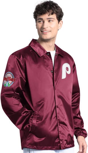 Look the part from the dugout to the stands with this Philadelphia Phillies Cooperstown Collection Point Man Full-Snap Coaches Jacket from Starter. This lightweight jacket is perfect for mild temperatures, offering a stylish layer of warmth without feeling bulky. With its full snap closure and elastic cuffs, it provides a comfortable and adjustable fit for everyday wear for any Philadelphia Phillies supporter.