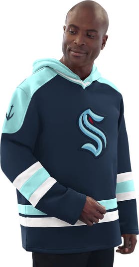 Stay warm while repping your favorite hockey team with the Seattle Kraken Hockey Pullover Hoodie from Starter. This classic hoodie features contrast-color stripes and embroidered appliques that let everyone know you're a diehard Seattle Kraken fan. The midweight fleece lining provides added warmth and a soft feel, making it perfect for those chilly days at the arena or anywhere you want to show your team spirit.