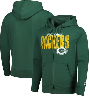 Show your Green Bay Packers pride with this Distressed Classic Full-Zip Hoodie from Starter. This stylish jacket features screen print team graphics for a vintage look, putting your fandom front and center. Crafted from a comfortable blend of cotton and polyester, it features two front pockets for item storage and a drawstring adjustable hoodie, allowing you to customize the fit.
