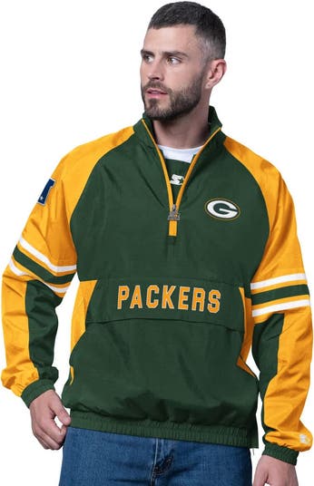 Show your support for the Green Bay Packers with this Prospect Half-Zip Pullover by Starter. Designed with crinkle-finish fabric, this lightweight pullover is suitable for mild temperatures and offers a comfortable fit with its elastic cuffs and hem. Applique team graphics on the chest and sleeve boldly display your Green Bay Packers pride.