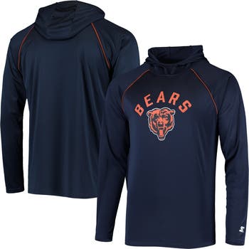 The Men's Starter Navy Chicago Bears Raglan Long Sleeve Hoodie T-Shirt is the perfect way to show unwavering support for the Chicago Bears. Contrast-color piping, raglan sleeves, and screen-printed graphics make this hoodie a head-turner. The scuba hood without a drawstring provides added warmth and comfort, while the rounded droptail hem offers a stylish look. Made from durable polyester, this hoodie is built to last and will keep you comfortable all season long.