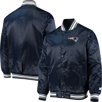 Men's Starter Navy New England Patriots Locker Room Satin Varsity Full-Snap Jacket