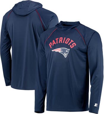 Men's Starter Navy New England Patriots Raglan Long Sleeve Hoodie T-Shirt