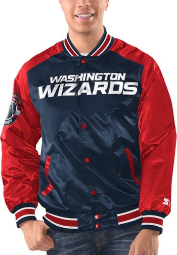 Men's Starter Navy/Red Washington Wizards Renegade Satin Full-Snap Varsity Jacket