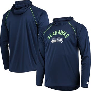 Men's Starter Navy Seattle Seahawks Raglan Long Sleeve Hoodie T-Shirt