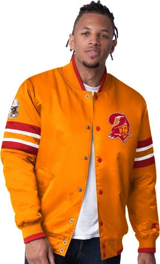 Show off your loyalty to the Tampa Bay Buccaneers in this Scout I Vintage Logo Full-Snap Varsity Jacket from Starter. Its satin fabric provides old-school cool style, while rib-knit trim adds a retro touch. With a vintage-inspired design and premium twill appliques, this Tampa Bay Buccaneers jacket offers a timeless look for devoted fans.