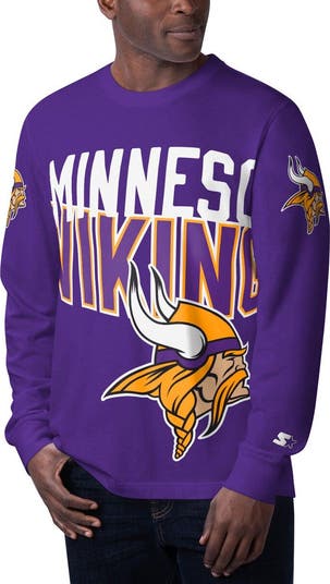 Make a spirited upgrade to your collection of Minnesota Vikings gear with this Clutch Hit T-shirt by Starter. It features striking Minnesota Vikings graphics printed on cotton fabric so that your enthusiasm stands out in comfy style. The classic crew design gives this versatile top a casual feel.