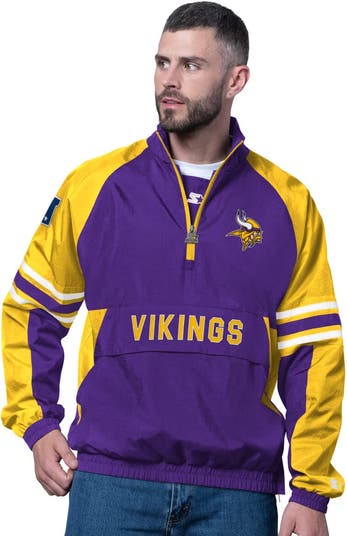 Show your support for the Minnesota Vikings with this Prospect Half-Zip Pullover by Starter. Designed with crinkle-finish fabric, this lightweight pullover is suitable for mild temperatures and offers a comfortable fit with its elastic cuffs and hem. Applique team graphics on the chest and sleeve boldly display your Minnesota Vikings pride.