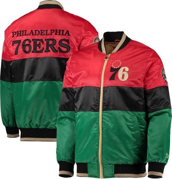 Celebrate Black History Month and 75 years of the NBA with the bold look of this Philadelphia 76ers full-zip jacket from Starter. It features glossy satin fabric, soft quilted lining and multiple pockets to keep items easily accessible. The official 75th Anniversary NBA logo and detailed Philadelphia 76ers graphics that coordinate with the rib-knit trim add the finishing touches to the multicolor design of this eye-catching jacket.