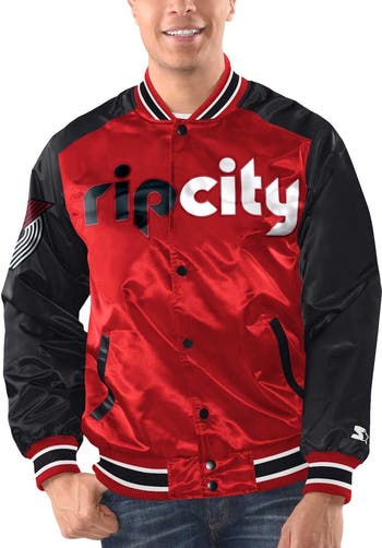 Draw attention to your personal style and Portland Trail Blazers devotion in this Renegade Varsity Satin full-snap jacket from Starter. Its contrast-color design highlights the Portland Trail Blazers team name in big, bold lettering across the front and their official logo on the back. You're sure to feel like an all-star fan when you sport this striking piece of outerwear.