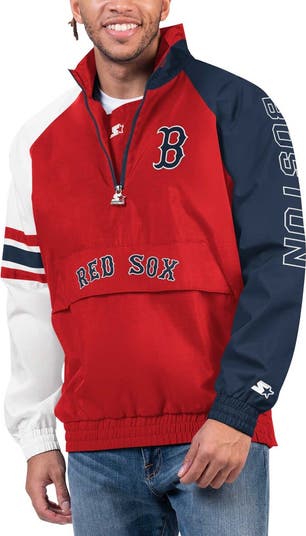 When it gets cooler, don't just grab your regular, everyday pullover, slide into this Boston Red Sox Elite jacket. It features bold Boston Red Sox graphics and the classic Starter silhouette that you love. Two distinct sleeve designs will help you stand out in the crowd while you're watching the team dominate the diamond. The half-zip closure, front pouch pocket and raglan sleeves will all ensure that you have a comfortable experience each time you put this jacket on.