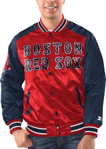 Elevate your style with this Boston Red Sox Varsity jacket. A full wordmark is embroidered across the chest, while their logo is on the right sleeve and their cap design is on the back. This full-snap jacket features a design you've come to expect from Starter and will have you feeling like you're a member of the Boston Red Sox, ready to take the diamond and dominate.
