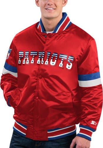 Men's Starter Red New England Patriots Gridiron Classics Home Game Satin Full-Snap Varsity Jacket