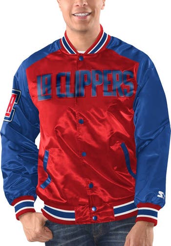 Draw attention to your personal style and LA Clippers devotion in this Renegade Varsity Satin full-snap jacket from Starter. Its contrast-color design highlights the LA Clippers team name in big, bold lettering across the front and their official logo on the back. You're sure to feel like an all-star fan when you sport this striking piece of outerwear.