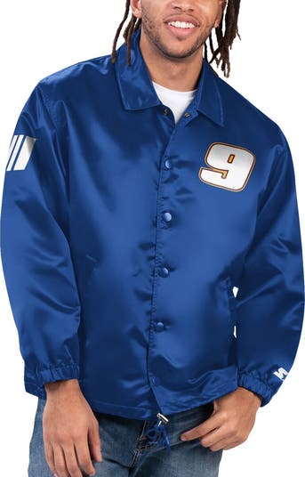 Rev up your style on race day in this Chase Elliott Option Route Coaches jacket. Its full-snap design by Starter features glossy satin fabric and Chase Elliott graphics displayed across the back. An adjustable hem lets you customize the fit for the most comfortable feel and toasty fleece lining keeps you warm as you rep your favorite driver.