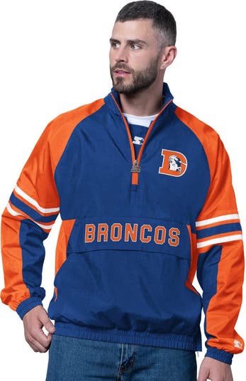 Show your dedication to the Denver Broncos with this Vintage Logo Prospect Half-Zip Pullover from Starter. This lightweight Denver Broncos pullover is perfect for those mild weather days when you want to show off your team pride. The elastic cuffs and hem provide a secure fit, while the zippered side split at the left hem adds extra ventilation.