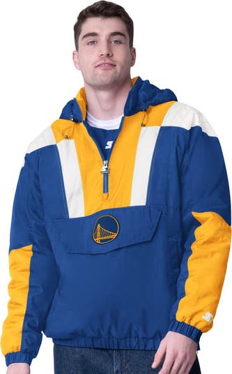 Embrace your Golden State Warriors spirit with this Starter Charger Half-Zip Pullover Jacket. Inspired by classic sideline style, this pullover features a front drop pocket and a hood with adjustable toggles for customizable comfort. With embroidered Golden State Warriors details, this pullover lets you represent your team while staying warm.