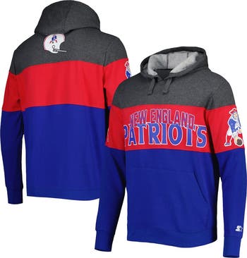 The Men's Starter Royal/Heather Charcoal New England Patriots Extreme Vintage Logos Pullover Hoodie is the ultimate tribute to your unwavering New England Patriots fandom. Its cozy fleece lining and front pouch pocket provide warmth and comfort, while the screen-printed graphics proudly display the iconic Patriots logos. Whether you're cheering from the stands or simply showing your support, this midweight hoodie is the perfect way to represent your beloved New England Patriots.