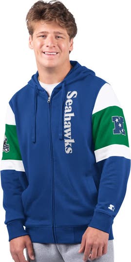 Channel the retro vibes of the Seattle Seahawks with this Starter Extreme Vintage Logo Full-Zip Hoodie. This midweight hoodie is perfect for moderate temperatures and features a fleece lining for added warmth and a soft feel. The adjustable hood provides extra protection from the cold, while two front pockets offer space for warming hands or holding small items.
