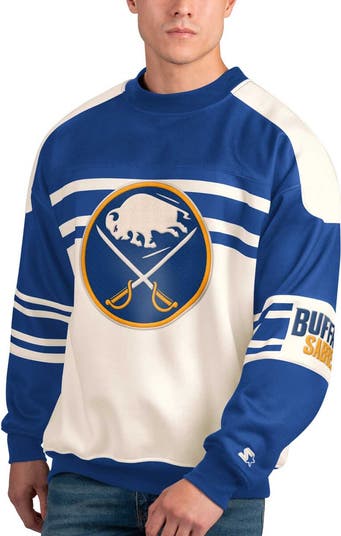 Men's Starter White Buffalo Sabres Defense Fleece Crewneck Pullover Sweatshirt