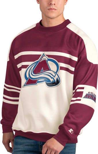 The Men's Starter White Colorado Avalanche Defense Fleece Crewneck Pullover Sweatshirt is the perfect way to show unwavering support for the Colorado Avalanche. Crafted from a cozy cotton and polyester blend, this midweight sweatshirt features embroidered fabric applique and graphics that proudly display Avalanche pride. The fleece lining provides added warmth during chilly game days, while screen-printed stripes add a stylish touch. Whether cheering from the stands or showing support, this sweatshirt represents the Colorado Avalanche in style.