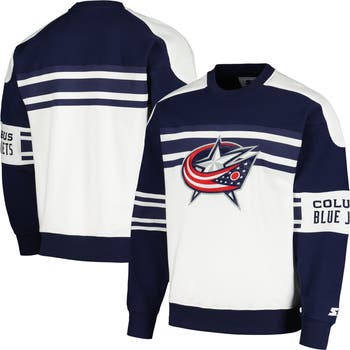 Men's Starter White Columbus Blue Jackets Defense Fleece Crewneck Pullover Sweatshirt