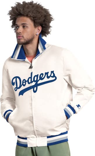Feel the echoes of legendary Los Angeles Dodgers moments every time you zip up this The Captain Cooperstown Logo Full-Zip Varsity Jacket from Starter. This midweight jacket features satin fabric and embroidered fabric applique graphics, delivering a vintage-inspired aesthetic that honors the club's storied past. Designed with an olympic collar, rib-knit, striped cuffs and waist hem, and locker loop, this jacket ensures a comfortable, secure fit, whether you're at the stadium or strolling the streets. With its 100% polyester construction and two front slip pockets, this Starter varsity jacket effortlessly blends iconic style with everyday functionality, making it a must-have for any dedicated Los Angeles Dodgers fan.