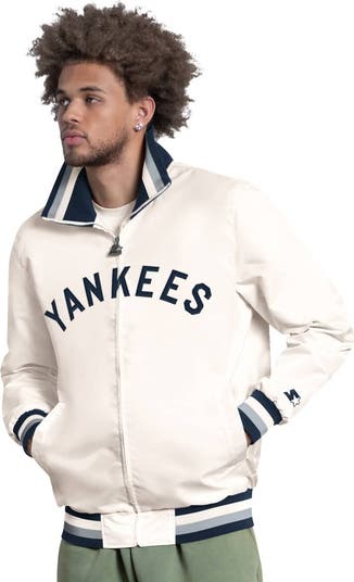 Men's Starter White New York Yankees The Captain Cooperstown Logo Full-Zip Varsity Jacket
