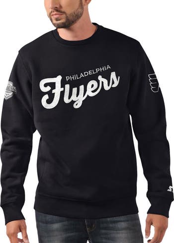 The Men's Starter x NHL Black Ice Black Philadelphia Flyers Cross Check Pullover Sweatshirt is the perfect way to show unwavering support for the Philadelphia Flyers. Crafted from a cozy cotton and polyester blend, this midweight sweatshirt features a fleece lining for added warmth on chilly game days. Embroidered fabric applique and graphics with crocheted details proudly display Flyers allegiance, making it the perfect way to represent the team in style.