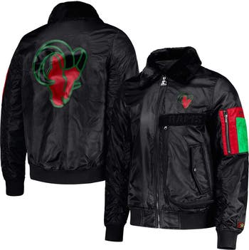 Ty Mopkins teamed up with Starter to create this exclusive Los Angeles Rams full-zip jacket. It features vivid squad graphics in colors that represent Black History Month, glossy satin fabric and plenty of pockets to keep items secure. Plus, quilted lining adds a lush feel to this specially designed Los Angeles Rams outerwear.
