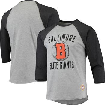 Celebrate the legacy of the Baltimore Elite Giants with the Men's Stitches Heathered Gray/Black Baltimore Elite Giants Negro League Wordmark Raglan 3/4-Sleeve T-Shirt. This vintage-inspired tee features distressed screen print graphics, paying homage to the iconic Baltimore Elite Giants of the Negro League. Flatlock stitching and a printed league patch add authenticity, while the rounded hem with serged stitching ensures a comfortable fit. Show unwavering support for the Baltimore Elite Giants and the rich history of the Negro League with this stylish and commemorative T-shirt.