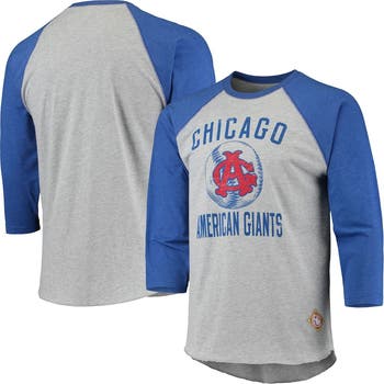 The Men's Stitches Heathered Gray/Royal Chicago American Giants Negro League Wordmark Raglan 3/4-Sleeve T-shirt is a must-have for any true Chicago American Giants fan. This stylish and comfortable shirt features a vintage-inspired design with distressed screen print graphics and a printed league patch. Flatlock stitching details and a rounded hem with serged stitching add sophistication, while the cotton and polyester blend ensures a comfortable fit. Whether you're cheering on the Chicago American Giants at the ballpark or showing support for the Negro League, this shirt is the perfect way to represent your team.
